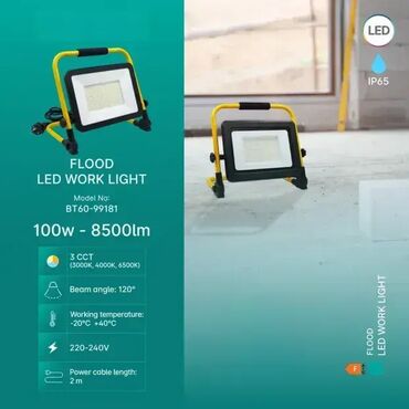 Opšte karakteristike Model br. BT60-99181Glavna grupaOutdoor LightingPod grupaLED WorklightTipWork LightBojaBlack+YellowRasipanje svetlostiDirectionalDimabilnoNot-DimmableIzvor svetlaLEDGarancija2 yearsKlasaClass IIPIP65IKIK07Karakteristike proizvoda Snaga100 wTemperatura boje3IN1Količina lumena8500 lmIndeks prikaza boje (CRI)>70Nivo energetske efikasnostiFUgao rasipanja svetlosti120° DegreesKategorija boje3IN1Električne karakteristike Lifetime20000 hNapon220-240VFaktor snage>0,9MaterijalAluminiumRadna temperatura-20 C+40 CFrekvencija50-60 HzDimenzije i težina artikla Dužina pakovanja310 mmŠirina pakovanja309 mmTežina1500 grInformacije o pakovanju Neto težina9,00 kgsBruto težina10,35 kgsKomada u kutiji6 pcsDužina410 mmŠirina355 mmVisina330 mmBarkod