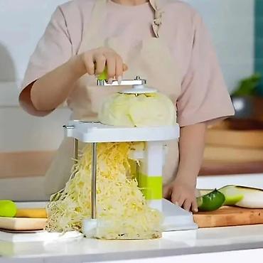 ➡️ Sve što je potrebno da šiljak provučete kroz kupus, zatim ga postavite na predviđeno mesto i okretanjem ručke započnete sečenje.