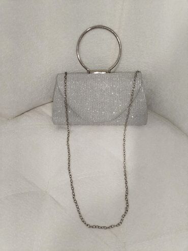 SrebrnaElegantna srebrna večernja torbica sa šljokičastim sjajem.