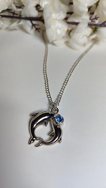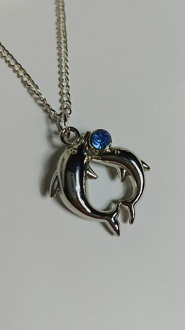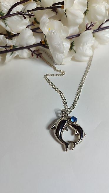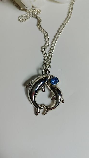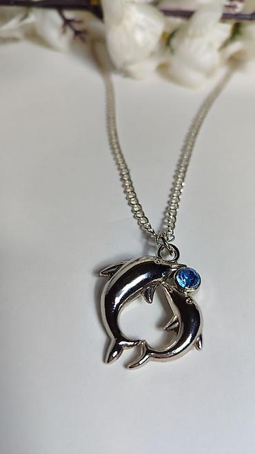 Srebrnasti lančić sa priveskom – dva delfina u obliku srca -