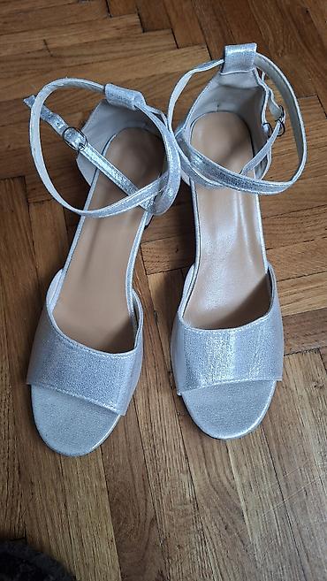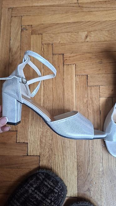 Srebrne sandale sa blok petom - Model: otvoreni prsti, široka prednja