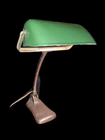 Stara, lampa sa emajliranom zasenom i figurom na gvozdenom postolju. Potice iz 1930god. u dobrom stanju, ispravna.