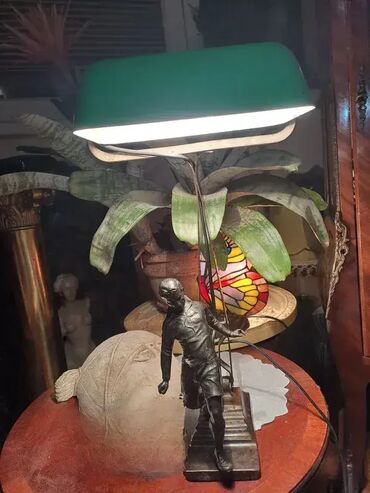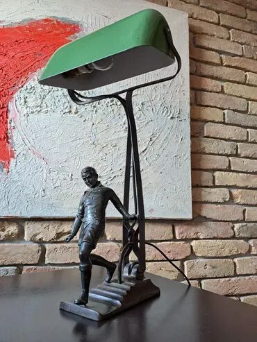 Pokupiti na licu mestaStara, lampa sa emajliranom zasenom i figurom na gvozdenom postolju. Potice iz 1930god. u dobrom stanju, ispravna.