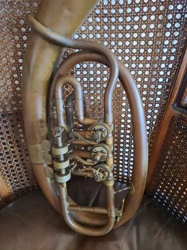 Bariton horn, instrument sa par ostecenja kao sto se vidi na slikama.