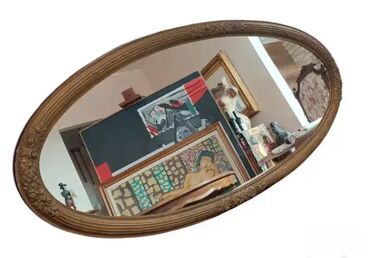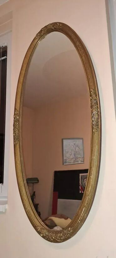 UpotrebljenоStaro, drveno ogledalo sa ramom u boji starog zlata. Ogledalo je u dobrom stanju, bez vecih ostecenja, osim tragova vremena. Prodaje se u vidjenom stanju. Ukupna dimenzija 129x61cm.