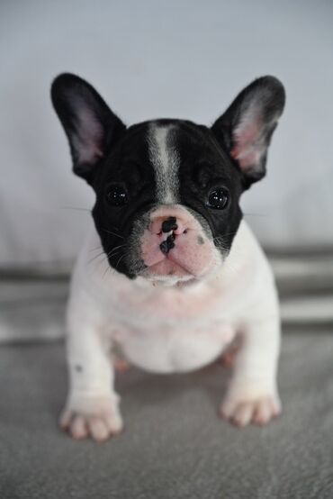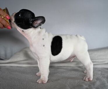 - Boja i šara: crno-belo (pied) – dominantno belo telo sa velikom crnom flekom na leđima; crna glava sa belom prugom po sredini lica i ružičasto-crnim nosem