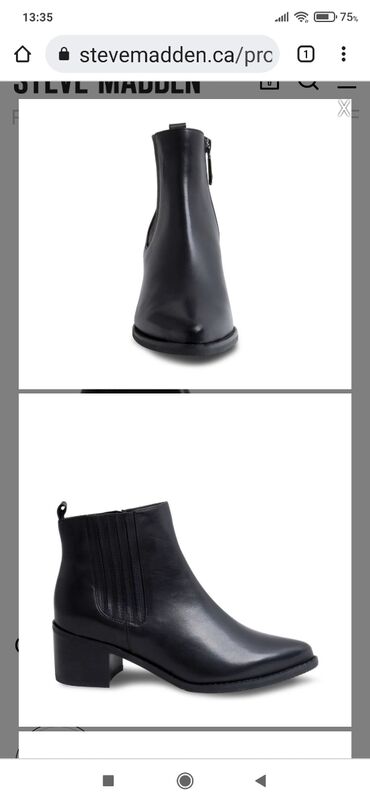 CrnaSteve Madden ženske kratke čizme,kožne,vodootporne,postavljene tekstilom sa unutrašnje strane.Čizne se kopčaju na zip sa unutrašnje strane noge a na spoljašnjoj strani imaju lastrih.Visina pete je 5 cm i peta je naslagana.Visina tj dubina čizama je 12 cm.Nove.Broj 38