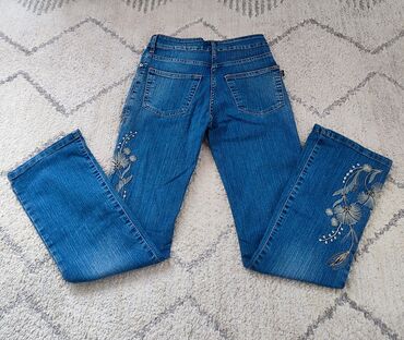 Farmerke sa sitnim šljokicama. Široke nogavice. Veličina 152