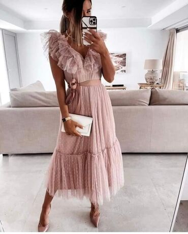 Velicina 40.Elegantna ženska haljina bez rukava, midi dužine. Gornji