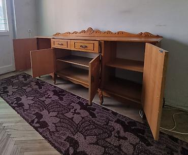 TV/AV ormarić od punog drveta (hrast ili svetli furnir), klasičnog dizajna. - Gornja ploča pravougaonog oblika, stabilna i dovoljno prostrana za TV, monitor ili dekoracije. - Otvoren srednji nivo/...