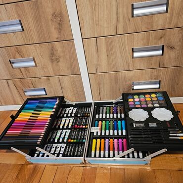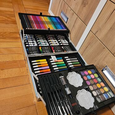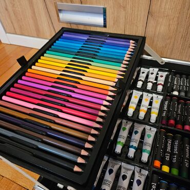 Praktičan, prenosiv set koji pokriva tehnike: crtanje bojicama, markere, akvarel, akril i uljane pastele. Idealno za školu, radionice i kućno stvaralaštvo.