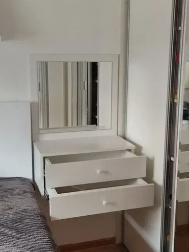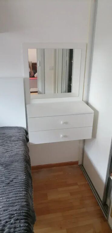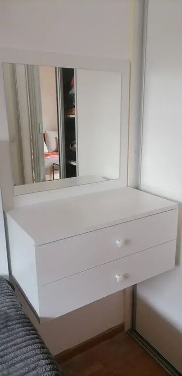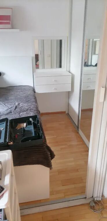 👉 Izrada nameštaja od pločastih materijala po vašoj želji i meri (Naslovna slika: sivo-crni ormar sa ogledalom.)