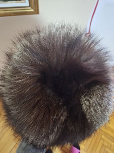 Ženska zimska kapa sa obodom od krzna, u toploj braon nijansi sa animal printom na gornjem delu. - Dizajn: kupolasta forma sa širokim, puhastim krznenim obodom koji vizuelno „uokviruje“ lice i pru...