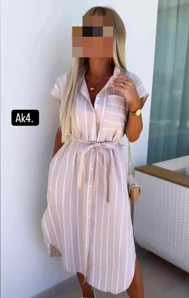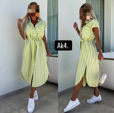 Suknja – duboki struk, veličina M. Boja: senf/oker. Kroj mini olovka sa blagim naborima sprijeda. Visoki struk sa širokim pojasom i dugim kaišem za vezivanje (mašna), kao i dodatnim provlakama. Kop...