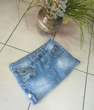 Zara mini suknja od eko kože u tamno braon boji. A-kroj sa dubokim preklopima/plikama napred i sa strane za efektan volumen. U kompletu je širok remen u istom materijalu, sa kružnom kopčom i zlatni...