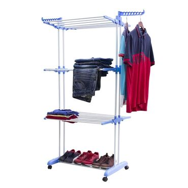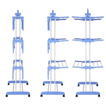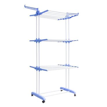 Opis: Predmet je sklopiv, stalak za sušenje sa 3 sloja dizajna za vešanje odeće i odlaganje cipela. Vešalica za cipele napravljena je od plastike i gvožđa. Sklopiv je, lako se instalira i uklanja. Sa 4 točka je lako za kretanje. Može se koristiti za vešanje odeće, peškira, posteljine i još mnogo toga.