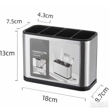 Držač za pribor od nerđajućeg čelika ima neklizajuću ABS podlogu koja sprečava prevrtanje ili klizanje prilikom uzimanja pribora. Takođe, štiti radnu površinu od ogrebotina.