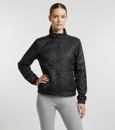 Bela ženska jakna, model sa kraćim krojem i rajsferšlusom napred