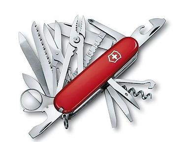 Victorimox swiss champ.Višenamenski švajcarski nož sa crvenom drškom i belim grbom. Kompaktan alat za svakodnevnu upotrebu kampovanje i putovanja, sa brojnim funkcijama