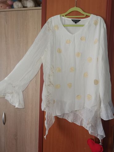 Bluza, jednom nošena. Jako prijatan materijal, providna je, dolazi uz pojas, strukirana. Nošena svega par puta, odlično očuvana.+381 61 27051xx