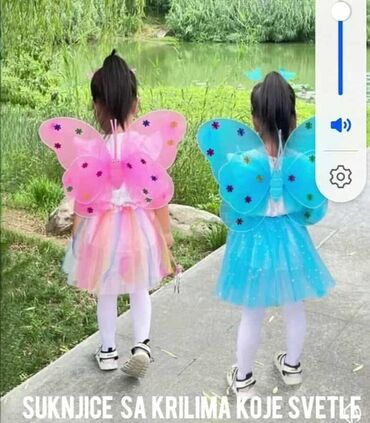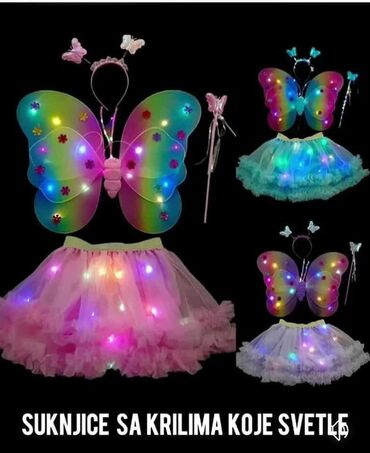 - Komplet obuhvata: tutu suknjicu, velika leptir krila sa LED lampicama, rajf sa leptirićem i štapić.