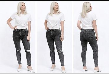 Ženske uske farmerke, tamnosive (faded/washed efekat), sa visokim