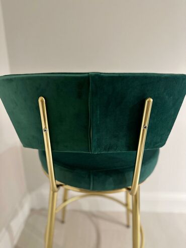 Barske stolice sa naslonom – tapacirane - Visoke barske stolice sa punim, kvadratnim sedištem i naslonom. - Tapacir u živim bojama: žuta (sa dekorativnim dugmićima/kapitone na naslonu) i plava (gl...