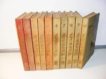 Tarzan 1-10 komplet Edgar Rajs Barouz(Edgar Rice Burroughs), Epoha Zagreb 1963/1965. s engleskog preveli: Branko Brusar, Milica Bujinac, Juraj Krilčić, Nada Šoljan. . tvrd povez, zlatotisk, format 17,5 x 22,5 cm , ilustrovano, latinica. Sadrži sledeće naslove : 1. Tarzan među majmunima ; 257 strana2. Tarzan se vraća ; 243 strana. 3. Tarzan i njegove životinje ; 204 strana4. Tarzan gospodar džungle ; 199 strana. 5. Tarzan i njegov sin ; 257 strana6. Tarzan neukrotivi ; 281 strana7. Tarzan i zlatni lav ; 242 strane8. Tarzan i čovjek lav ; 247 strana9. Tarzan i ljudi leopardi ; 242 strana. 10. Tarzan i Tarzani blizanci ; 190 strana. Stanje Vrlo dobro,