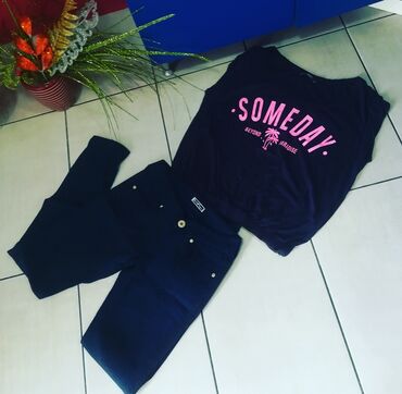 ZARA pantalone + Bershka kombinezon + kosulja - ZARA pantalone, veličina EUR XL (USA XL, MEX 32). Sive, sa sjajnim crnim cvetnim aplikacijama od šljokica. Široka elastična guma u struku sa učkurom...