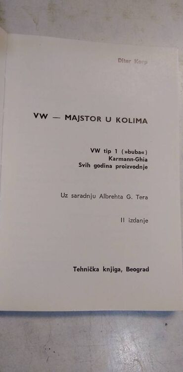 O trošku kupcaPokupiti na licu mestaTehnicka knjiga:Majstor u kolima-VW buba i Karmann Ghia, mini format 74+6 str. srpski