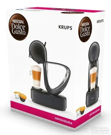 Tehničke Karakteristike : Voltaža 220-240Frekvencija 50-60Način podešavanjaLED indikator količine NEInterfejs na dodir NEPrilagođavanje količine DATopli &hladni napici DADemontažni rezervoar za vodu DAXL funkcija (i do 300 ml) NEAutomatsko zaustavljanje napitka NeSistem za mleko KapsuleDemontažna tacna za kapanje DAOsvetljenje za šoljice NEOblik utičnice Pod pravim uglomVrsta utičnice EVROPADemontažni kabl NESnaga: 1500 WPritisak: 15 baraProvidni rezervoar za vodu zapremine: 1,2 lAutomatsko isključivanje nakon 5 minutaUpotreba Dolce Gusto kapsula različitih ukusaRučno pokretanje i zaustavljanje isticanja kafePriprema toplih i hladnih napitakaPosuda za kapanje, može se prilagoditi visini šoljaDimenzije (VxŠxD): 37 x 15 x 28 cmTežina: 2,65 kgBoja: crna