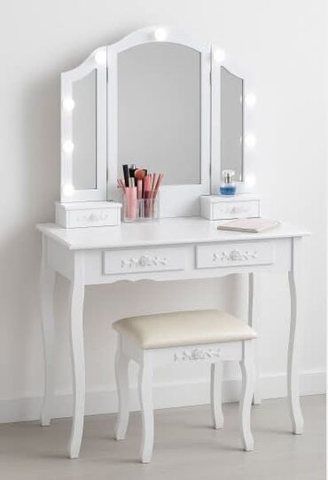 BelaToaletno sto sa hollywood svetlima (najpopularniji model) + stolica. Cena 18500 dinara. (140x80x40 cm)