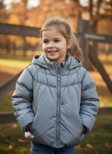 Dečija zimska jakna sa kapuljačom i pojasom - Model: duga, prošivena