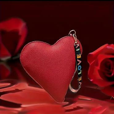 Napomena: Poslednja fotografija prikazuje srodni model srca u crvenoj boji radi ilustracije oblika i nošenja. Glavni predmet je leopard-print torba.