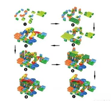 🟩 U ovom šarenom setu dobijate mnoštvo delova: kockice, delove za pravljenje tobogana, kuglice koje se sastavljaju, i možete napraviti čitavu konstrukciju, zatim pustiti kuglice da se spuštaju niz tobogane. Zabavi nema kraja!