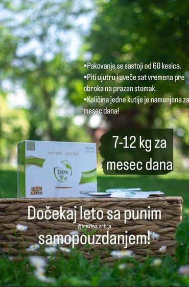 Trex Tea čaj je formulisan za mršavljenje i efikasno sagorevanje masti. Ovaj čaj smanjuje apetit i pruža osećaj sitosti, što doprinosi kontroli unosa hrane. Pakovanje sadrži 60 kesica, namenjeno je za korišćenje tokom jednog meseca. Preporučuje se konzumacija ujutru i uveče, sat vremena pre obroka na prazan stomak. Korisnici mogu očekivati gubitak težine od 5 do 12 kg mesečno.