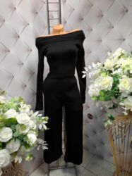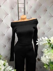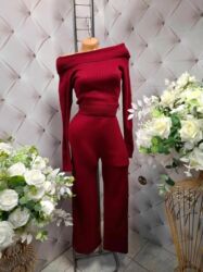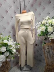 Ženski komplet – džemper i pantalone - Model: dvoslojni komplet sa pletenim „kabel“ uzorkom - Gornji deo: džemper sa polurol-kragnom, duži rukavi, ravni kroj - Donji deo: visok struk sa elastičnim...