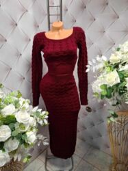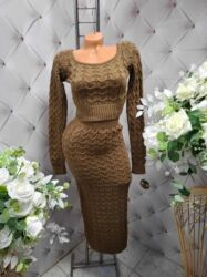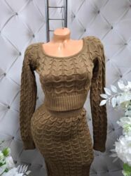 Ženski komplet – džemper i pantalone - Model: dvoslojni komplet sa pletenim „kabel“ uzorkom - Gornji deo: džemper sa polurol-kragnom, duži rukavi, ravni kroj - Donji deo: visok struk sa elastičnim...