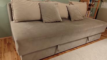 Kauč na rasklapanje, 90x200, sa 4 jastuka i fiokom za odlaganje posteljine.