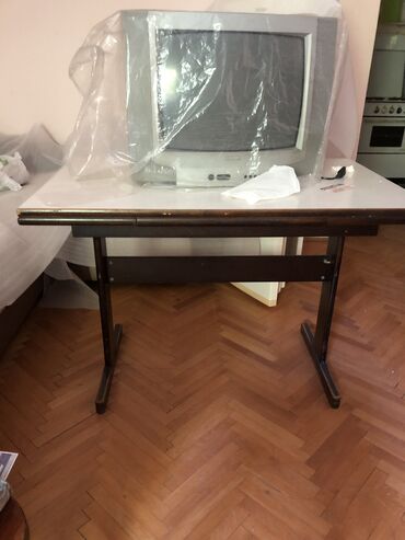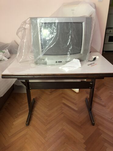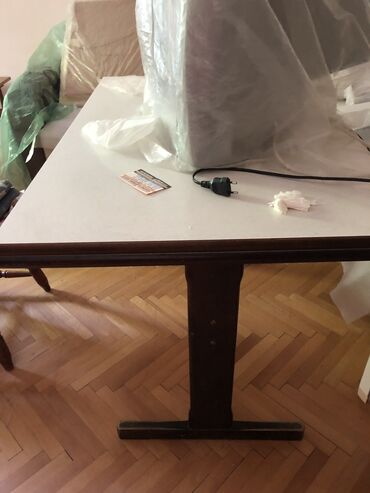 Pokupiti na licu mestaTrpezarijski drveni sto, bela ploča, crni nogari, dimenzija 110x70cm, rasklopljen 170x70cm, visina 75cm. Nalazi se na Karaburmi, prevoz nije obezbeđen.