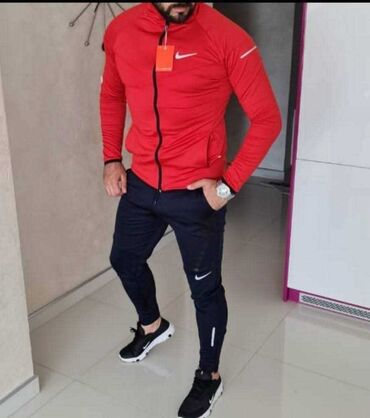 Komplet trenerki sa kapuljačom – Nike stil - Set od dva dela: gornji deo (dukserica sa kapuljačom) i donji deo (pantalone/jogger). - Boje: crna, siva i crvena varijanta. - Materijal: mekani pamučn...