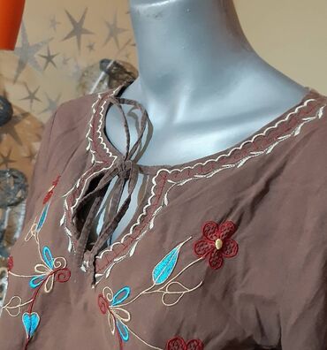 Romantična, boho bluzica koja se lako kombinuje sa farmerkama ili suknjama za svakodnevne i ležerne prilike. Marke MA SHI JIE, veličina M prema etiketi.