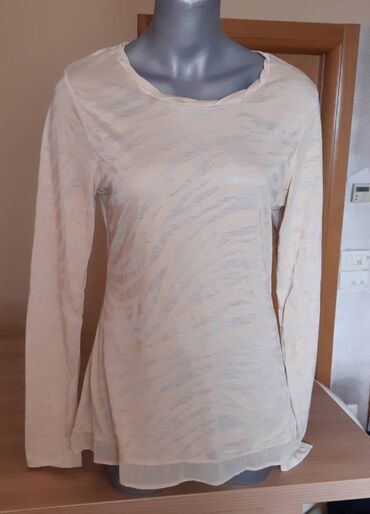Ženska majica/bluza sa dugim rukavima u svetloj bež nijansi.