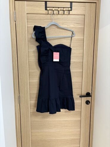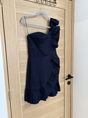NAF NAF Elegantna ženska haljina na jedno rame, tamnoplave (navy) boje.