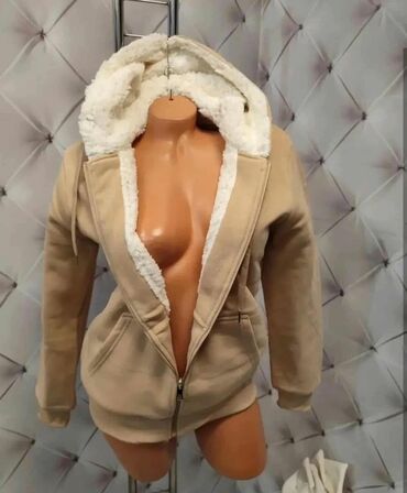 Ženska zimska dukserica sa rajsferšlusom i kapuljačom, postavljena toplim veštačkim krznom Cena 2600 M- XL