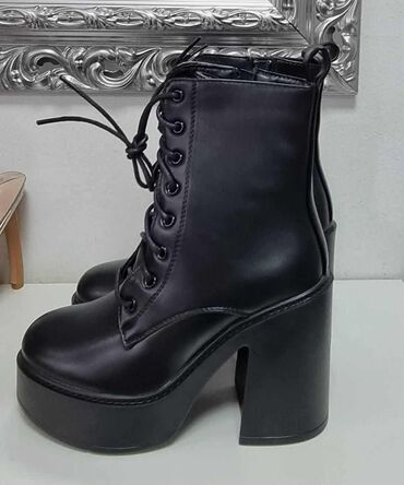Drugi brendCrne ženske čizme na platformu i visoku blok štiklu.