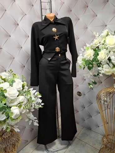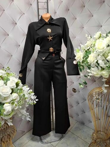 Elegantna crna dvodelna kombinacija (košulja + pantalone)