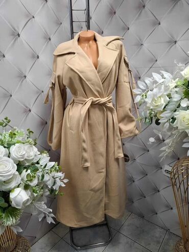 Idealno za jesen i zimu, lako se kombinuje uz elegantne i casual kombinacije. Pojas omogućava prilagođavanje siluete, a neutralne boje čine ga univerzalnim komadom garderobe.