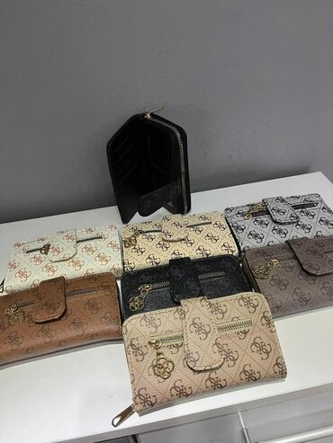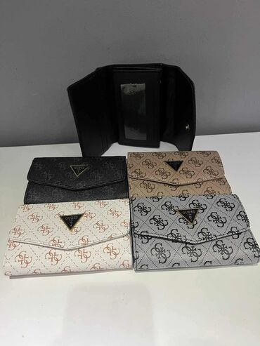 - GUESS: crna, siva, bež, krem/bela sa monogramom.