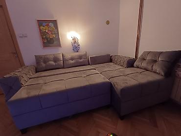 - Konfiguracija u obliku slova L sa širokim ležajnim delom duž cele garniture – može da se koristi kao prostran bračni ležaj kada se razvuče.